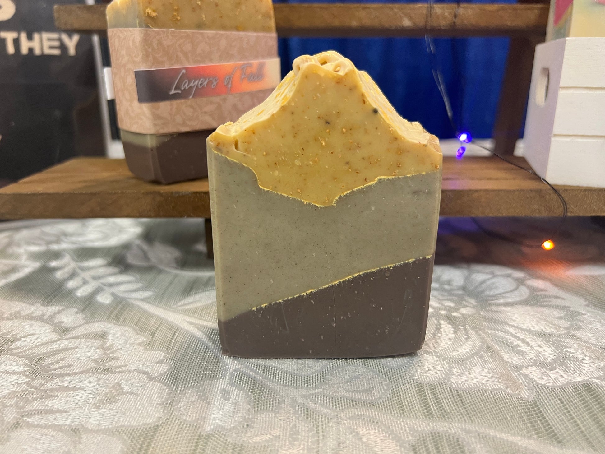 Natural coloring from clay and carrots gives a beautiful contrast to the gold mica lines on this moisturizing bar. With essential oils for a gentle woodsy scent, fall will become more than a season, but your whole mood.
